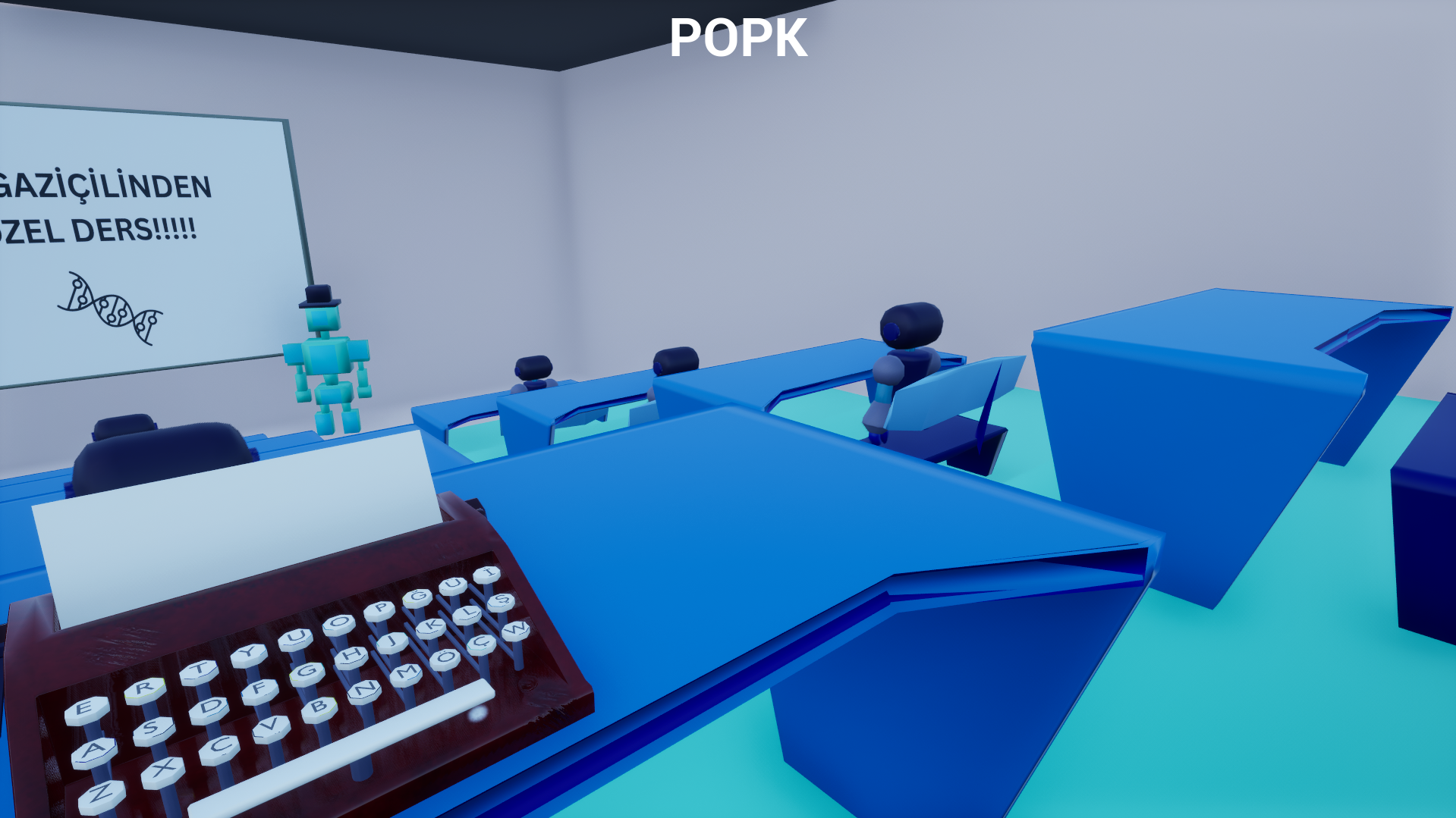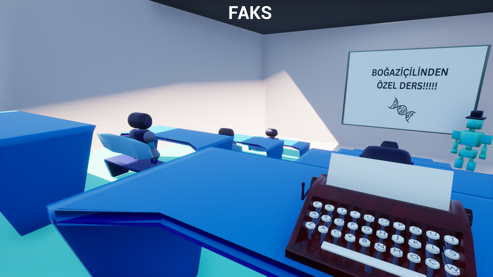 Yıllar geçse, Teknoloji büyüse bile Okullarda hala ekrandan yazı okuyan ve yavaş yazan öğrencileri beklemeyen öğretmenler eğitim vermektedir ve öğrencilerden ise hala bunları not alması beklenir. Teknik değişmese bile gelenek gereği hala öğrencilerden not alınması beklenir. oyunumuzda ise öğrenciler ise defter kalem değil daha üst teknlolojili eşyalar kullanarak not alıyordur. Karakterimiz ise bu geleneği protesto etmek amaçlı sınıfa Daktilo ile gelmiştir ve sınıfın ortasında yüksek sesli bir şekilde yazmaya başlar.